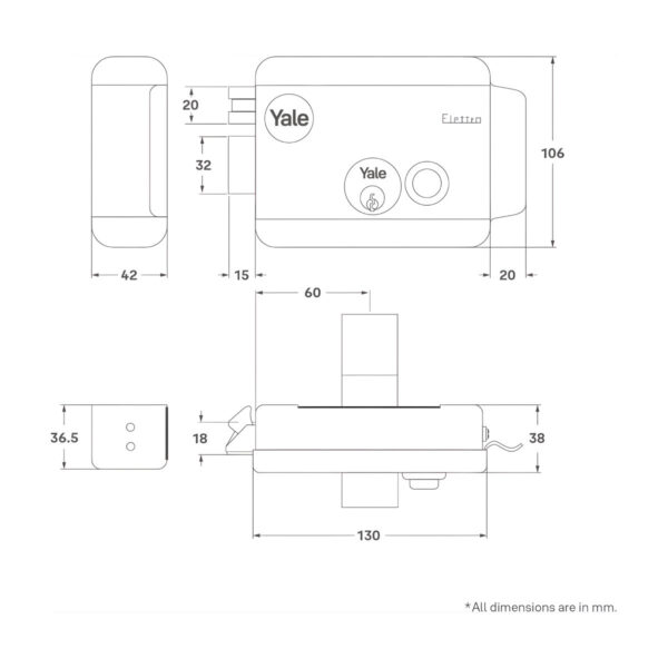 The Yale 68800602 Electric Rim Lock is a reliable surface mounted electric lock designed for secure access control. It features a durable latch bolt, fixed external and internal cylinders, and a button lock with under hatch and sub lock roof for added protection. Supplied with three keys, it operates exclusively with a 15W / 12V transformer, making it ideal for controlled entry systems in residential or commercial settings.