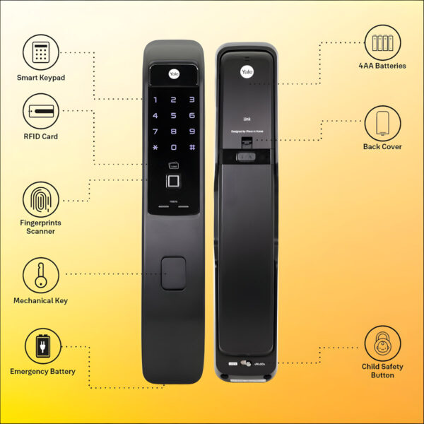 Ways to Access: Fingerprint scan, PIN code, RFID tag and Smartphone through the Yale Home app and Smart Living app (Yale Connect Wi-Fi Bridge and BLE Module are included for remote functionalities)